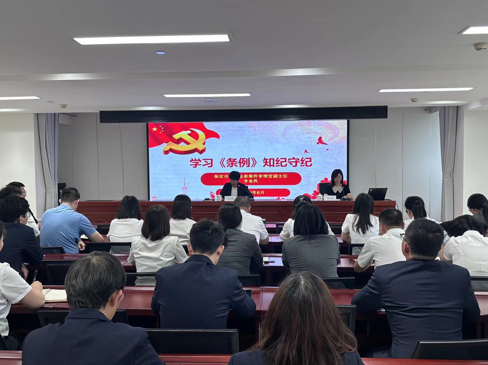 6月13日,人力資源部聯(lián)合監(jiān)察專員辦公室組織開展職工教育培訓(xùn),邀請保定市紀(jì)委監(jiān)委案件審理室副主任李金鳳以《學(xué)條例,知紀(jì)守紀(jì)》為題為全體干部職工授課。本次培訓(xùn)由集團(tuán)紀(jì)委書記孫曉靜主持,她在主持講話中要求全體干部職工要做到消化吸收,學(xué)以致用,切實(shí)把鐵的紀(jì)律轉(zhuǎn)化為日常習(xí)慣和自覺遵循,時刻將遵規(guī)守紀(jì)刻印在心,時時用《條例》檢視、約束、警示自己;黨員和領(lǐng)導(dǎo)干部要做好示范和引領(lǐng),以身作則、以上率下,認(rèn)真學(xué)紀(jì)、全面執(zhí)紀(jì)、對標(biāo)明紀(jì)、篤行守紀(jì)。集團(tuán)公司全體干部員工、各子公司經(jīng)營班子成員參加培訓(xùn)活動。